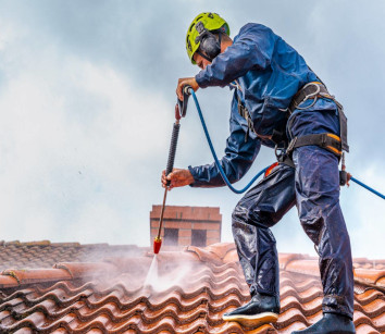 Enlèvement de la mousse, des lichens, et divers résidus pour empêcher les ravages et étendre la durée d'utilisation de la couverture.